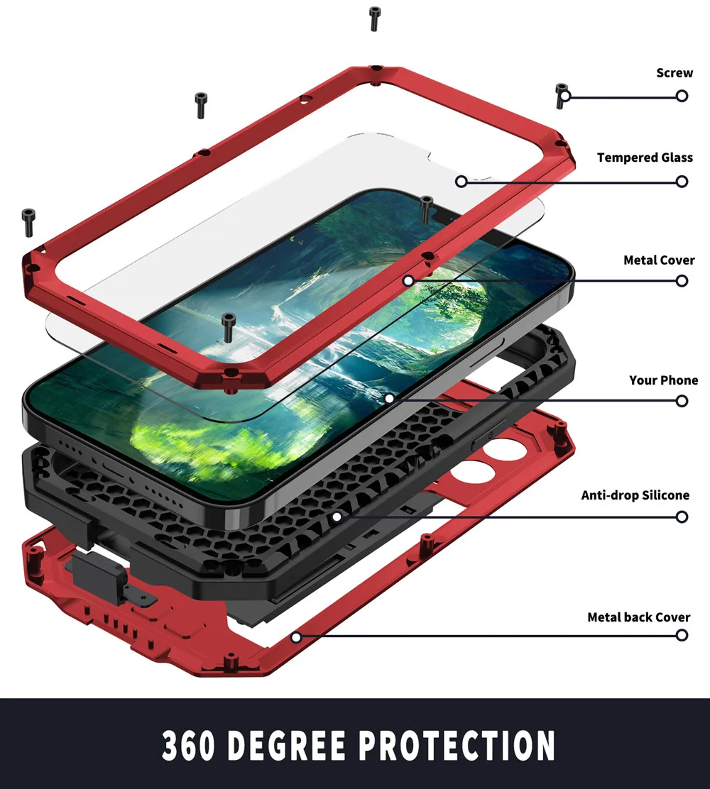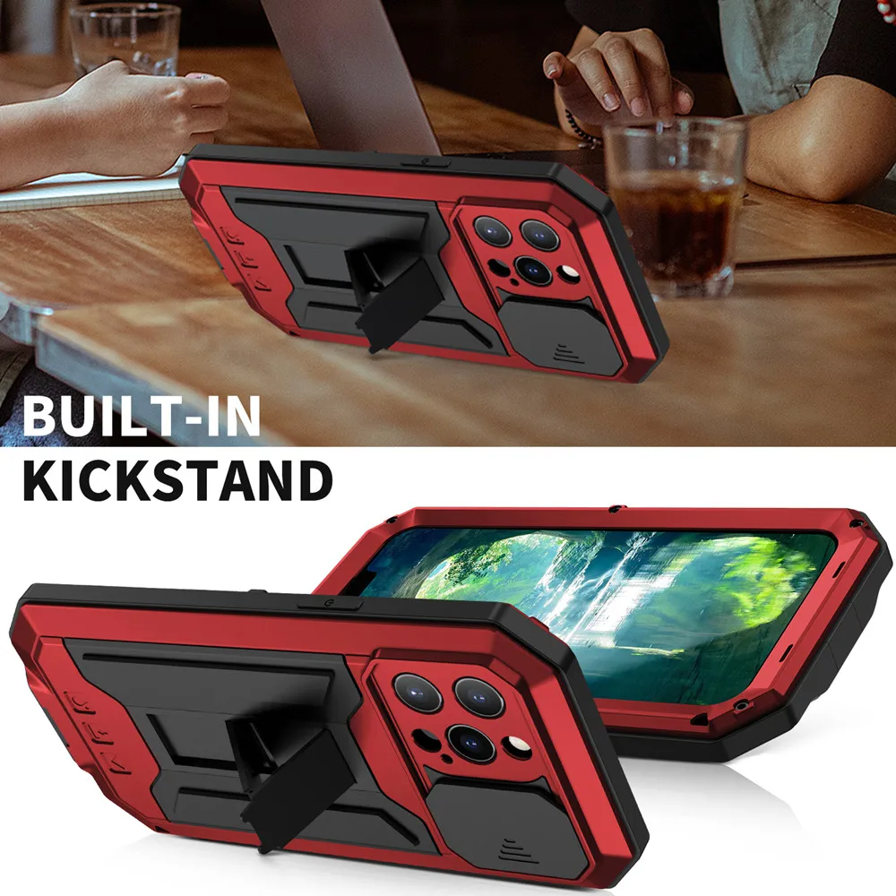 Color: Yellow, Material: Plastic - Heavy Duty Metal Aluminum Case For iPhone 14 13 15 Pro Max Military Grade Shockproof Bumpers Armor Kickstand Camera Slider Cases