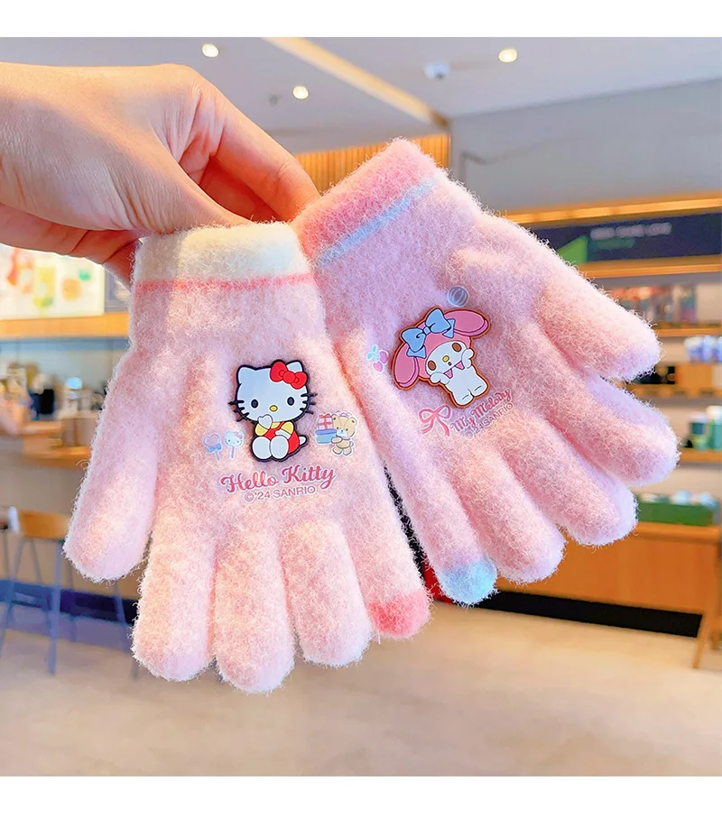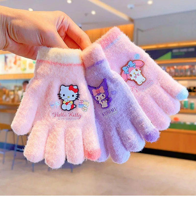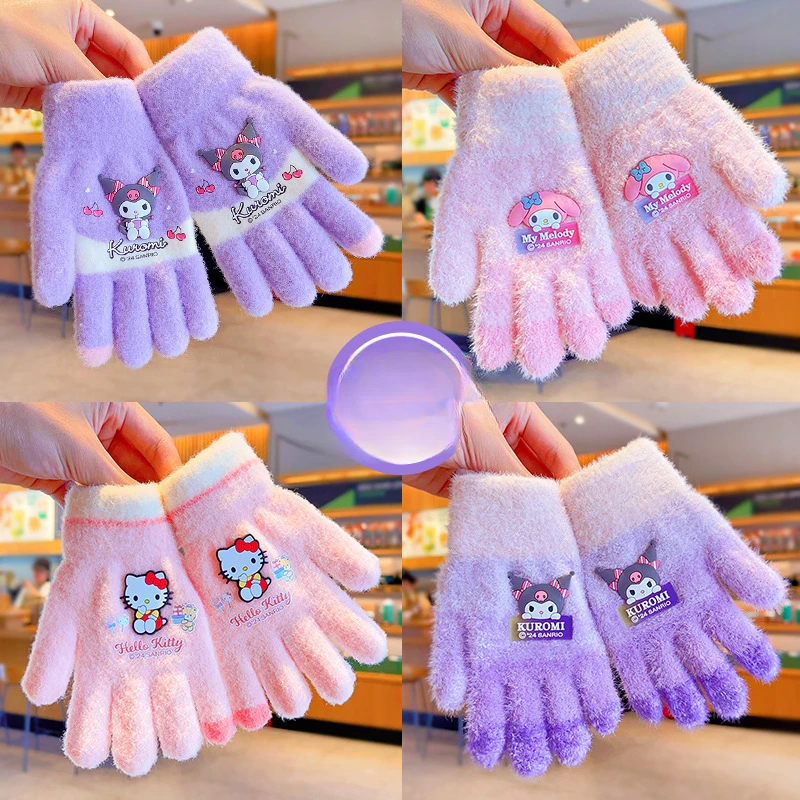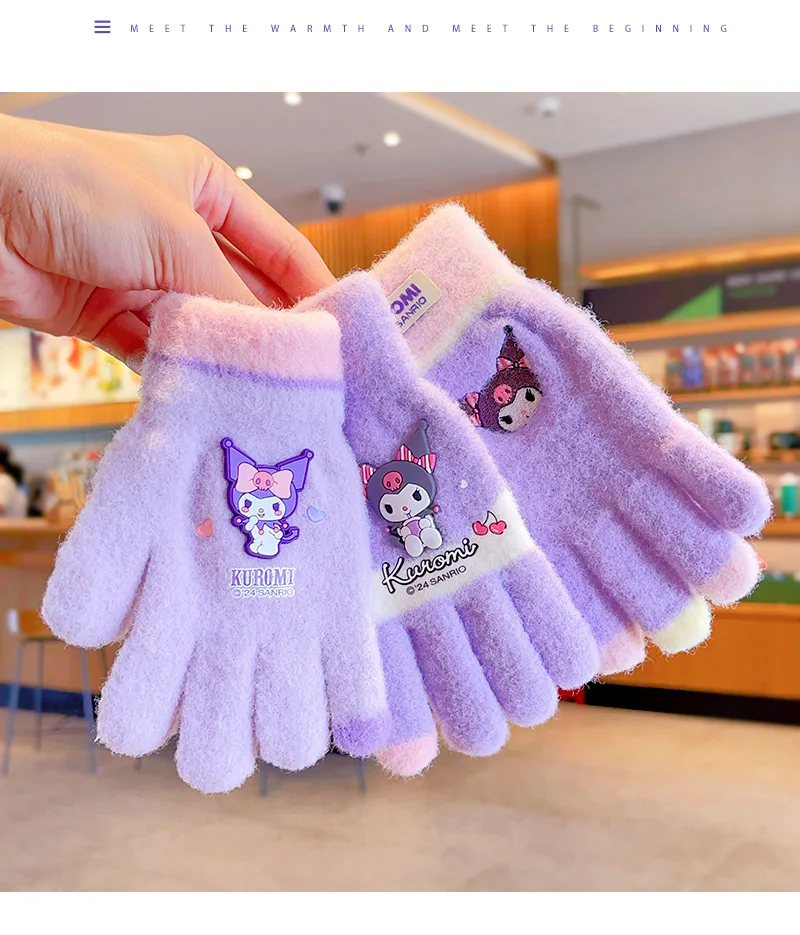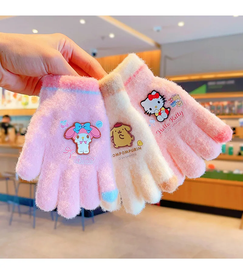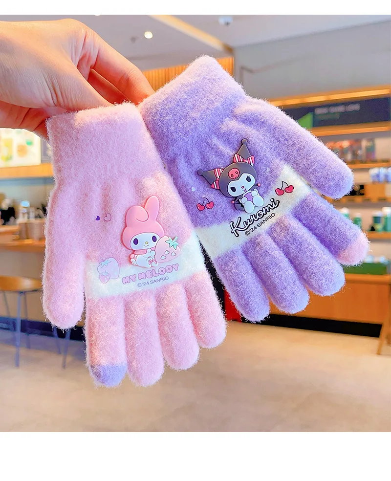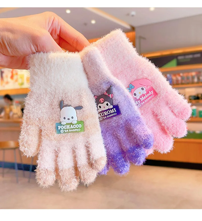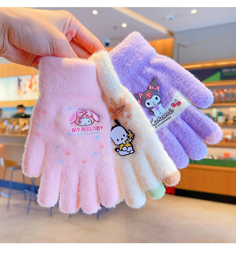 Color: Yellow - Sanrio Gloves Kawaii My Melody Kuromi Cold-Proof Winter Finger Gloves Plush Screen Touch Warm Children Toddler Christmas Gifts