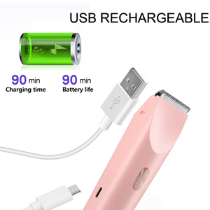 - USB FAST RECHARGING: Body hair trimmer with an 1.5 hour full charge, the built-in 400mAh battery provides up to 90 minutes of cordless use. Meet your hair cutting needs anytime and anywhere. The women electric shaver low noise design offers you a cozy mood while shaving
