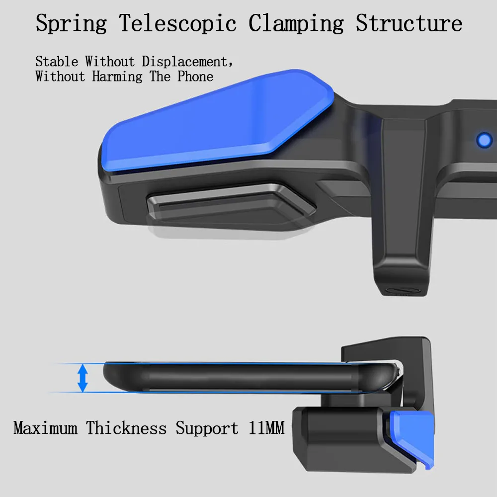 -Spring telescopic clamping structure, stable without shifting, won't damage the cellphone, supports a maximum thickness of 11MM