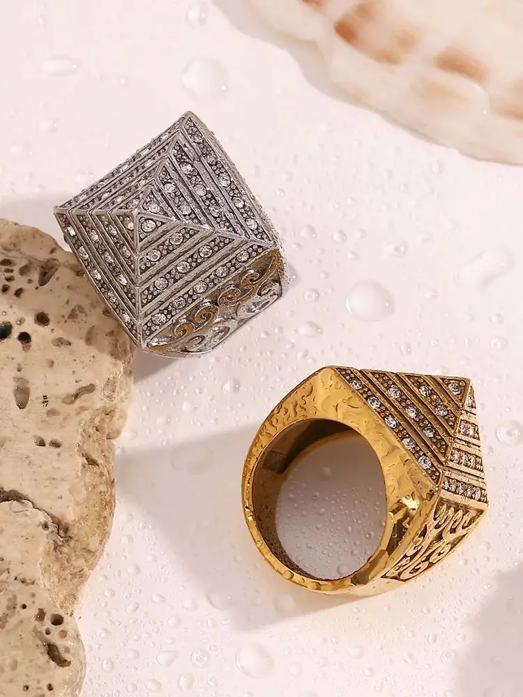 Step up your style game with the Cool Shiny Pyramid Vintage Vine Rings for Men, a striking blend of vintage charm and