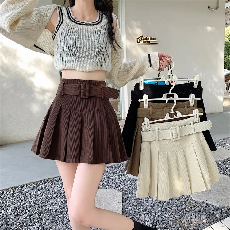 The Corduroy Half Women's Autumn A-line Half Skirt Pleated Skirt is the perfect fusion of classic style and seasonal charm. Made from soft, durable corduroy fabric, this skirt offers both comfort and warmth, making it an ideal choice for the autumn season. Its A-line silhouette and pleated design create a flattering, feminine shape that complements various body types. Whether you're heading to work, a casual outing, or a fall event, this skirt provides both versatility and elegance in one stylish piece.