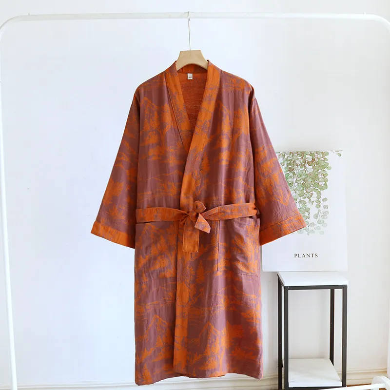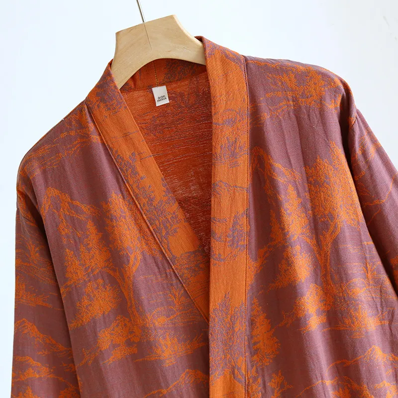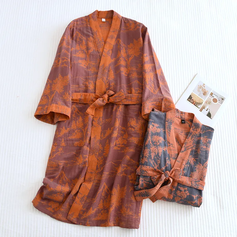 Product Description: Couple Cotton Loose Bathrobe Lace Bathrobe Women's Double Jacquard Pajamas