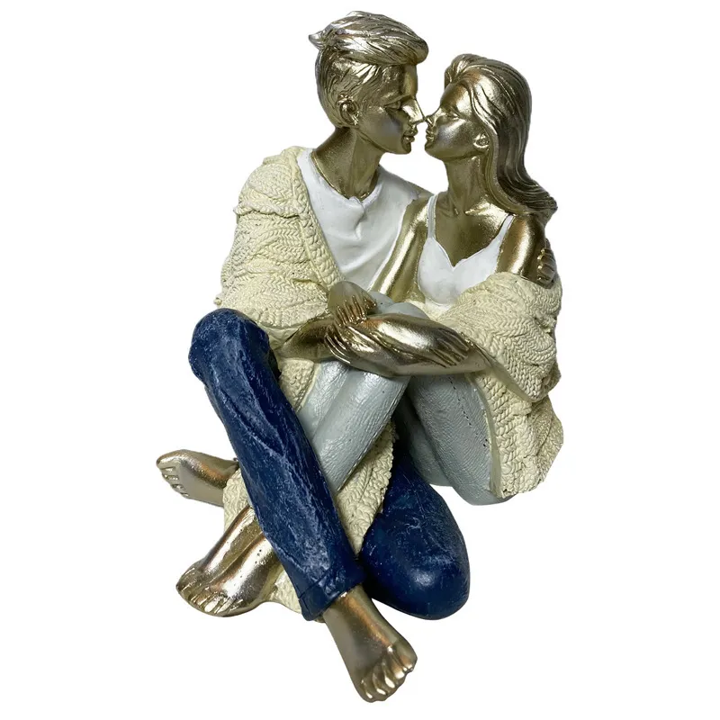The couple in the sculpture represents unity and connection, not only between the two figures but also in the context of relationships. This ornament serves as a reminder of the importance of togetherness, support, and love. Displaying this piece in your home brings a sense of harmony and peace, encouraging feelings of closeness and affection among those who see it.