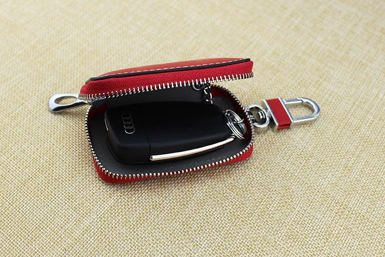 Besides car keys, the Cowhide Car Key Bag features additional compartments to store credit cards, IDs,