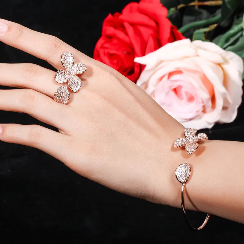 The adjustable bracelet is designed to fit comfortably on any wrist size, while the ring is equally customizable, allowing you to wear it on different fingers without worrying about size. Both pieces are crafted from high-quality materials, ensuring durability and long-lasting shine. The sleek, modern design of the set makes it suitable for all ages, from young adults to more mature fashion enthusiasts.