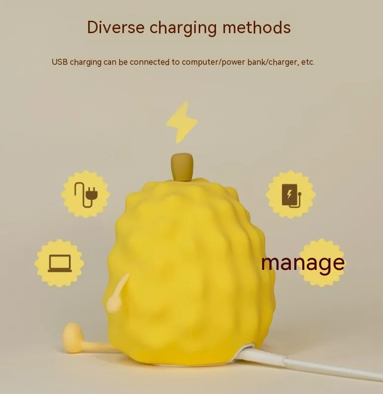 Creative Durian Design: The lamp features a fun and playful durian fruit design, adding a unique touch of personality and