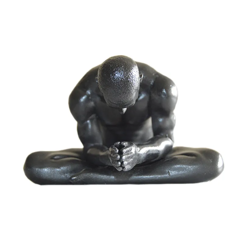 The figure features a seated posture, symbolizing prayer and devotion, with hands clasped together in reverence. The minimalist design focuses on serenity and spiritual reflection, making it ideal for creating a peaceful and contemplative atmosphere. This statue embodies the connection between body, mind, and spirit, offering an opportunity for deep reflection during moments of worship or personal meditation.