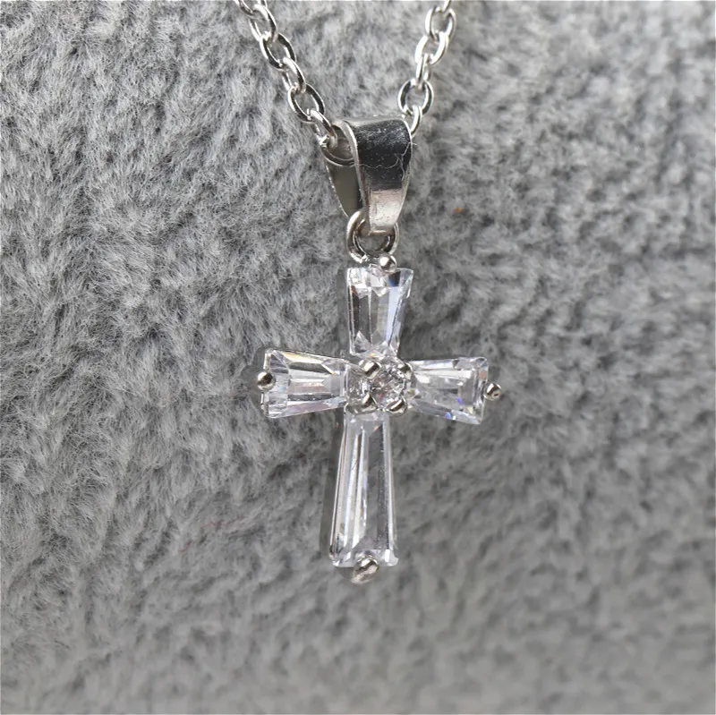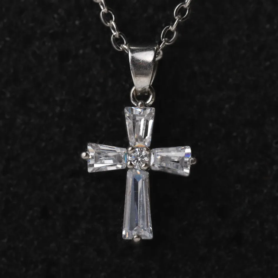 Cross gemstone crystal necklace