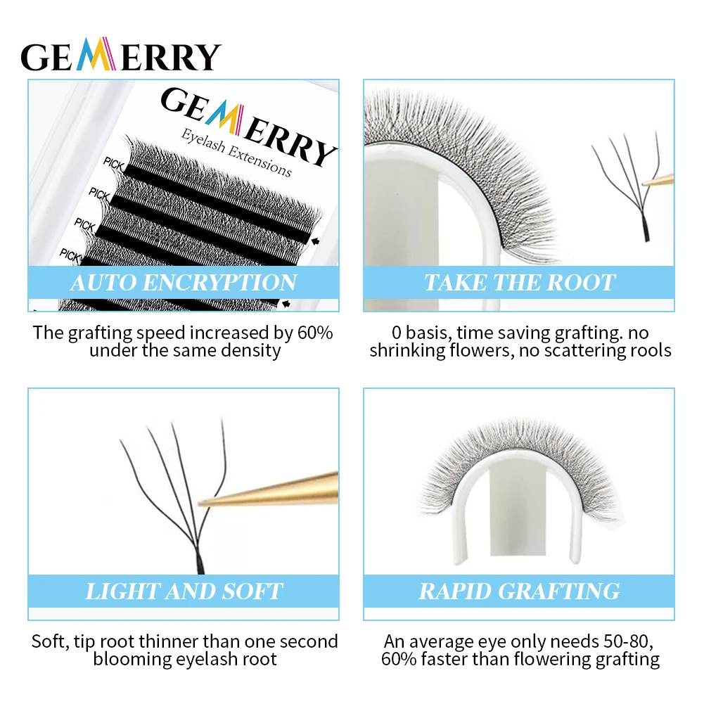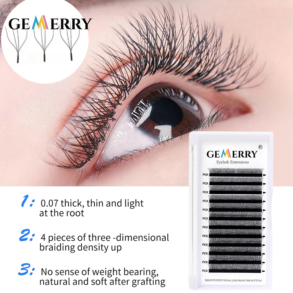 Curl: C, Thickness: 0.07mm, Length: 11mm, Ships From: CHINA - Gemerry Cilios W 4D W-shaped Eyelash Extension Automatic Flowering W Lashes LU/L/C/D Curl High Quality Individual Fake Eyelashes