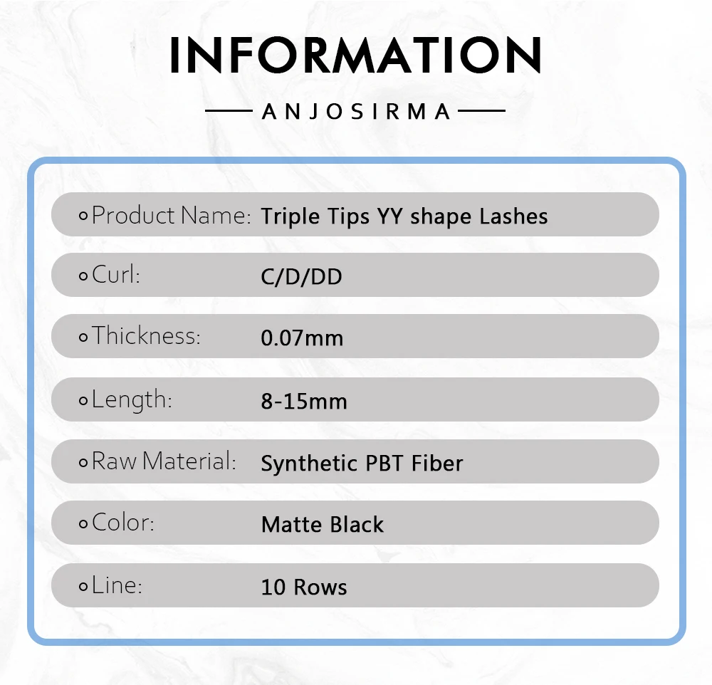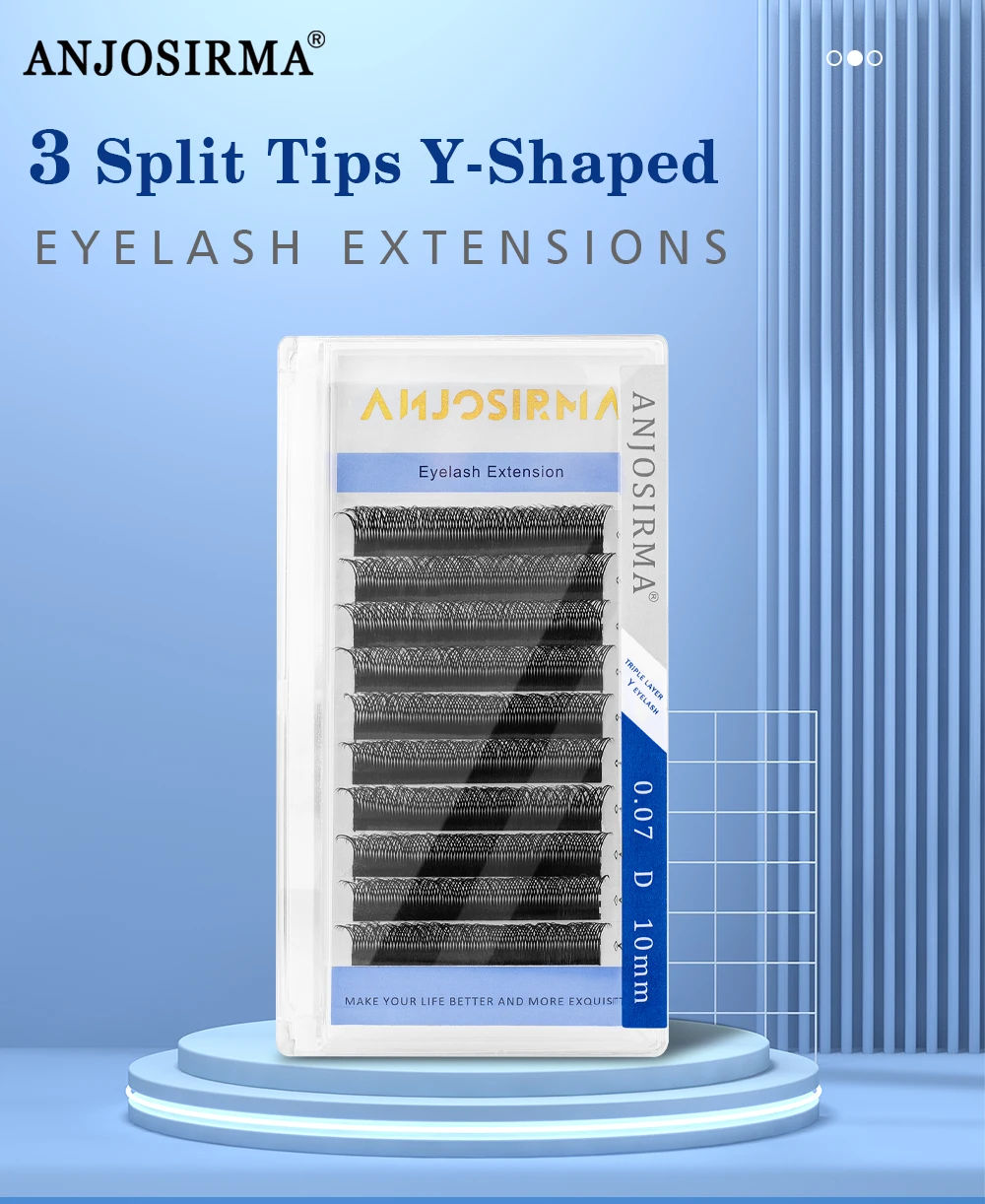 Curl: D, Length: 15mm - ANJOSIRMA YY Shaped Eyelash Extension, 3 Split Tips, Soft BASF Lash, Hand Made Curl, High Quality, 3D,0.07 makeup eyelashes