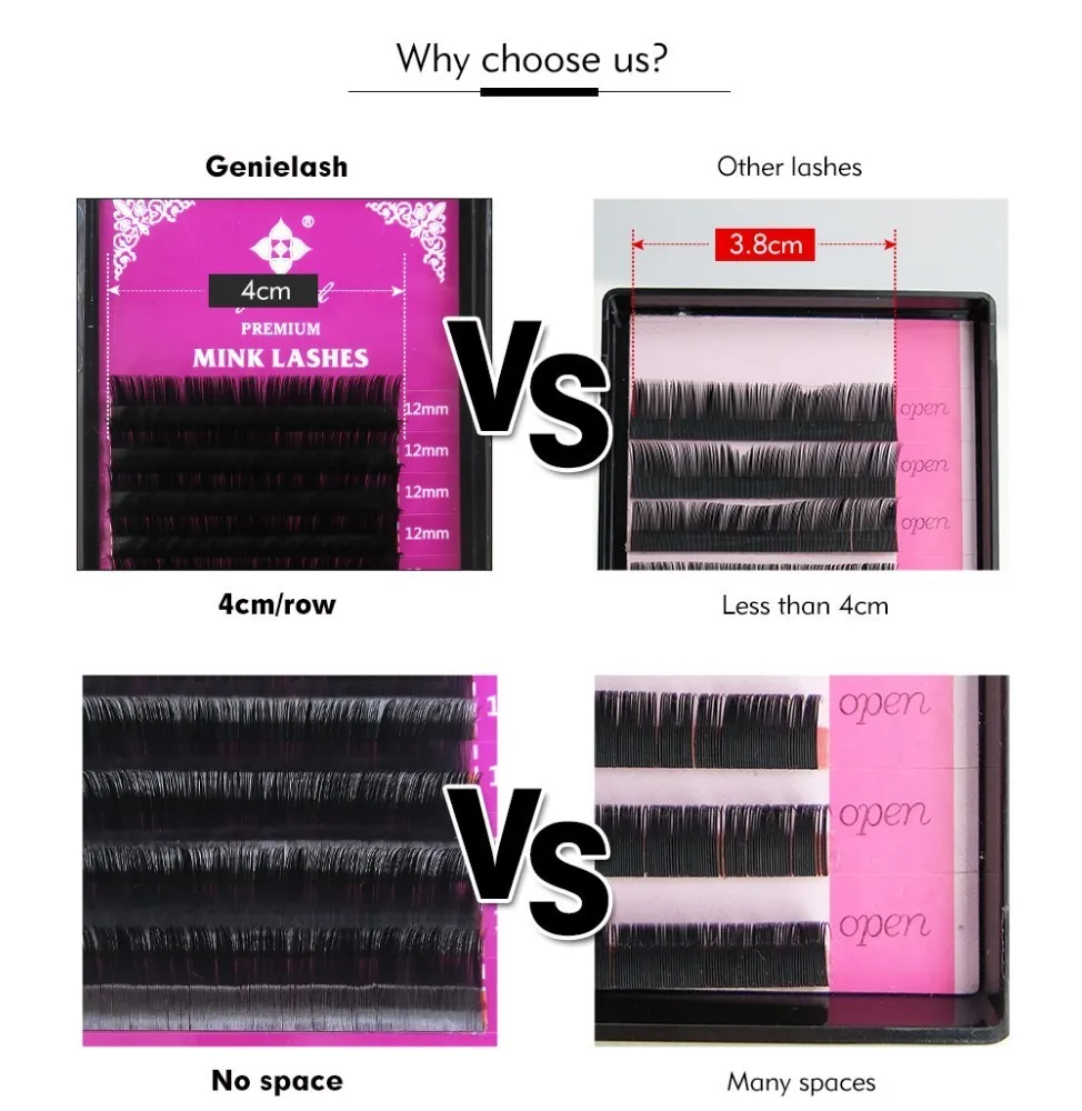 Curl: D, Thickness: 0.05mm, Length: 14mm - Genie 20pcs/lot All Sizes Mink individual lash Extensions hybrid set volume eyelash extensions mega volume individual eyelashes