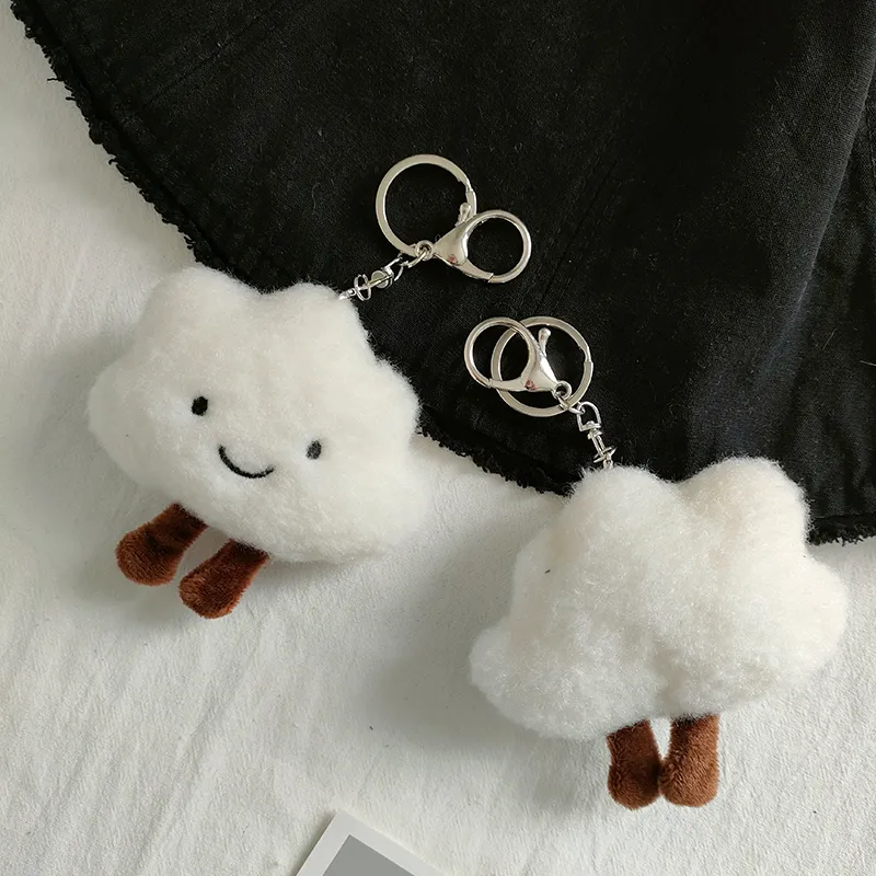 Cute Plush White Cloud Pendant Couple Keychain Ring