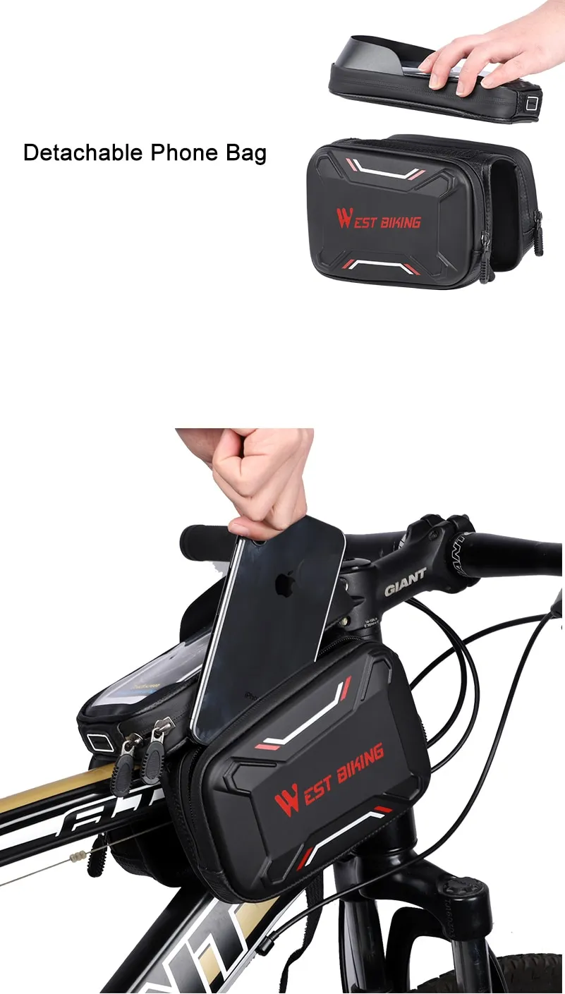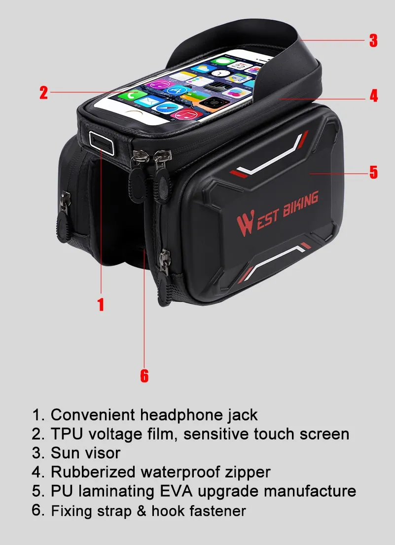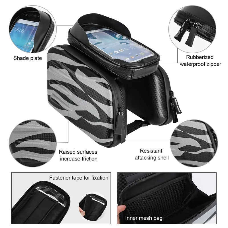 Name: waterproof bike front bag Material: EVA composite fabricSize: as pictureNet Weight: about 362g Suitable phone size: