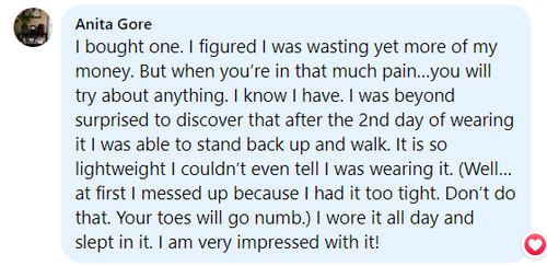 "Back feels so much better immediately upon putting it on. Tighten it up and keep it on a few hours. It makes