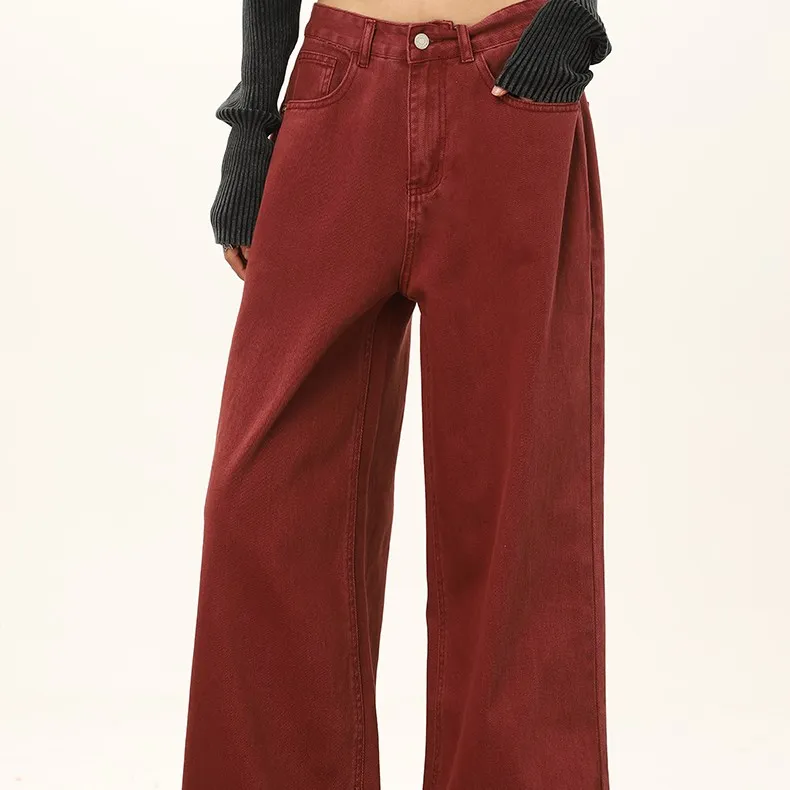 Easy Care: The dark red jeans are easy to care for and maintain, retaining their color and fit after multiple washes.