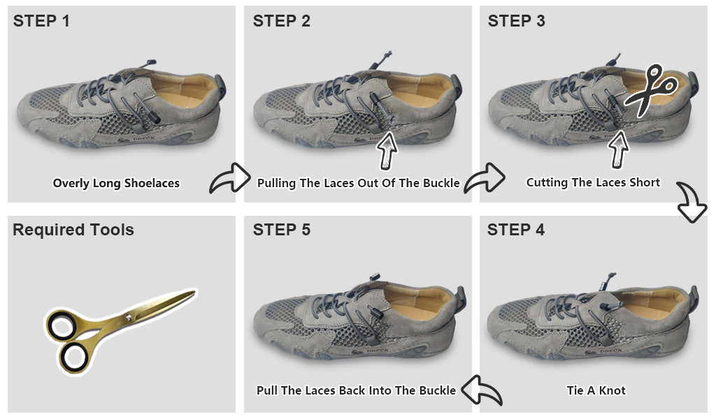 *Tip2: The Dbeck® Quick Lace System allows you to adjust the length of the laces by trimming them yourself, so you can get the best fit for your feet by adjusting the length of the laces.