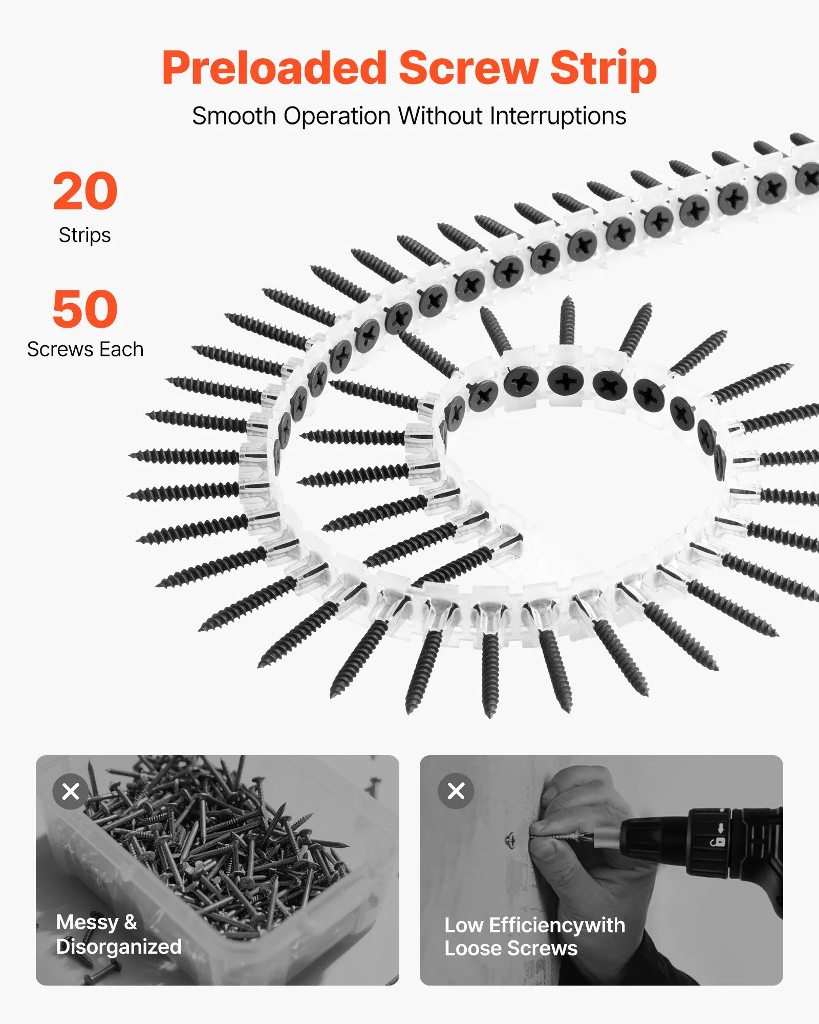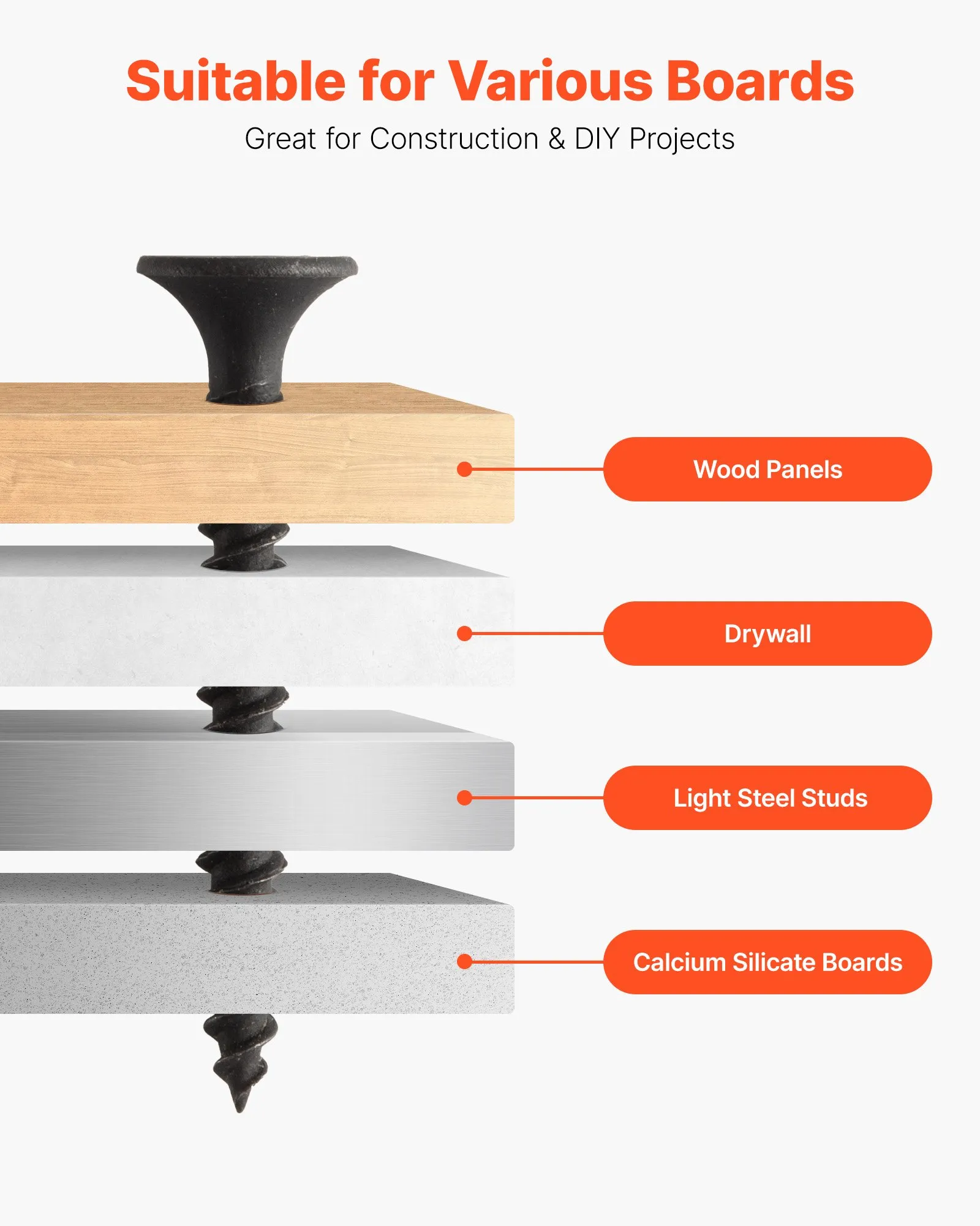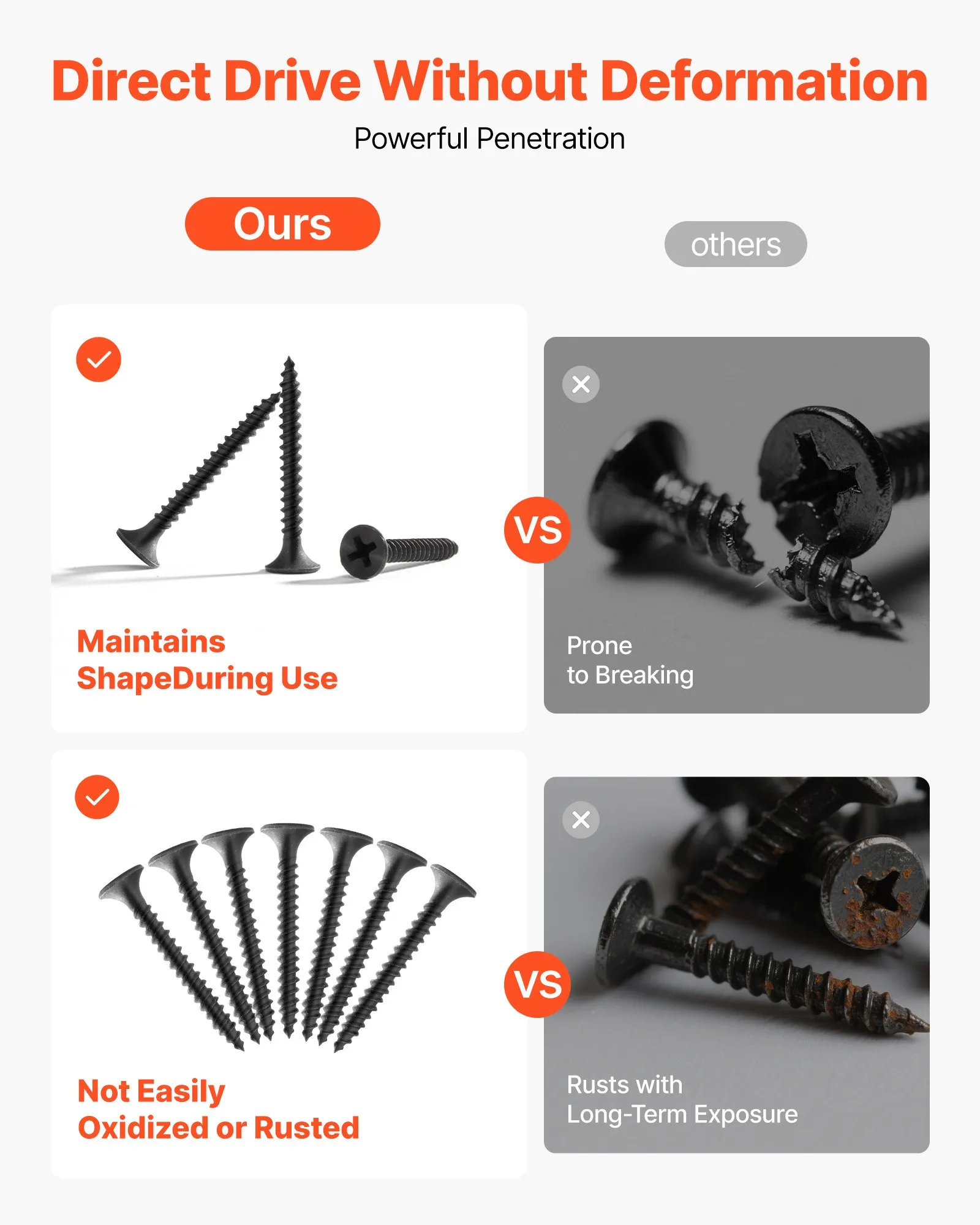 The self-tapping design and sharp tips save time and effort, even when working with hardwoods.