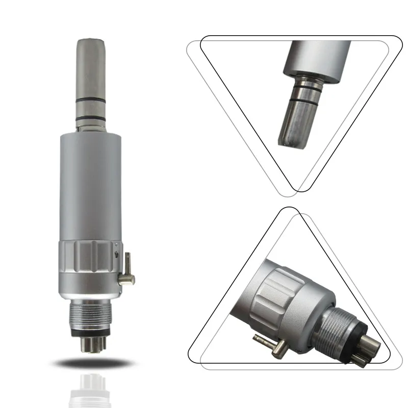 Its ergonomic and lightweight design ensures comfortable extended use, while its low noise and vibration contribute to a more comfortable experience for both the dentist and the patient. Compatible with standard dental tubing systems, this handpiece can easily integrate into your existing equipment. Whether you're performing routine cleanings or more delicate procedures, the Dental External Waterway Slow Speed Handpiece Low Motor delivers the precision and reliability you need.
