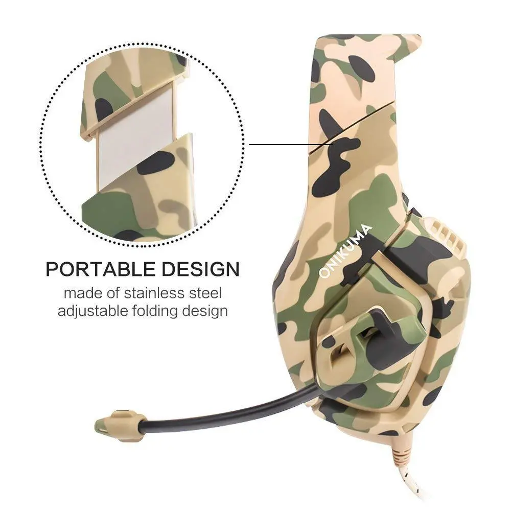 Camouflage Design: The unique, stylish camouflage pattern gives the headset a cool, edgy look, making it a standout