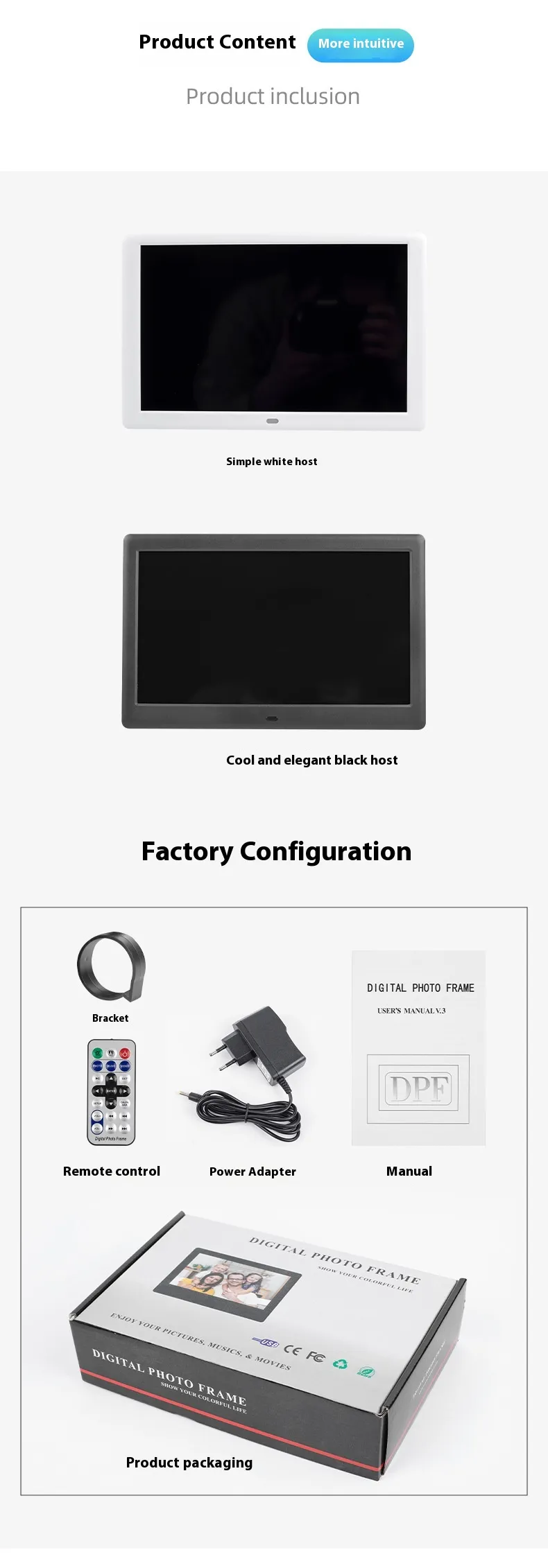 The Digital Picture Frame is designed for user-friendly operation, making it easy to set up and start enjoying your photos in no time. With simple plug-and-play functionality, the frame is ready to go right out of the box.