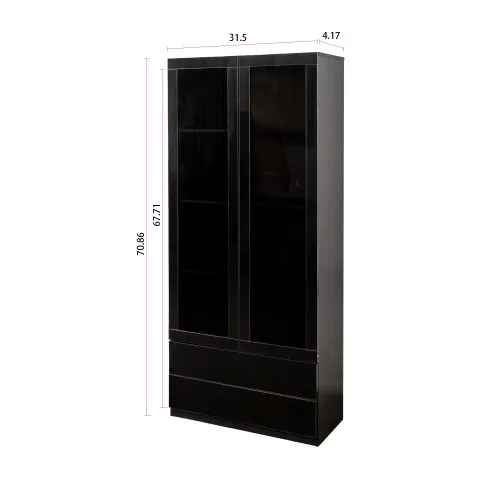 - This display cabinet comes with 4 shelves and 2 draweres, providing ample space for all your necessities and allowing you to view the stored items at a glance.