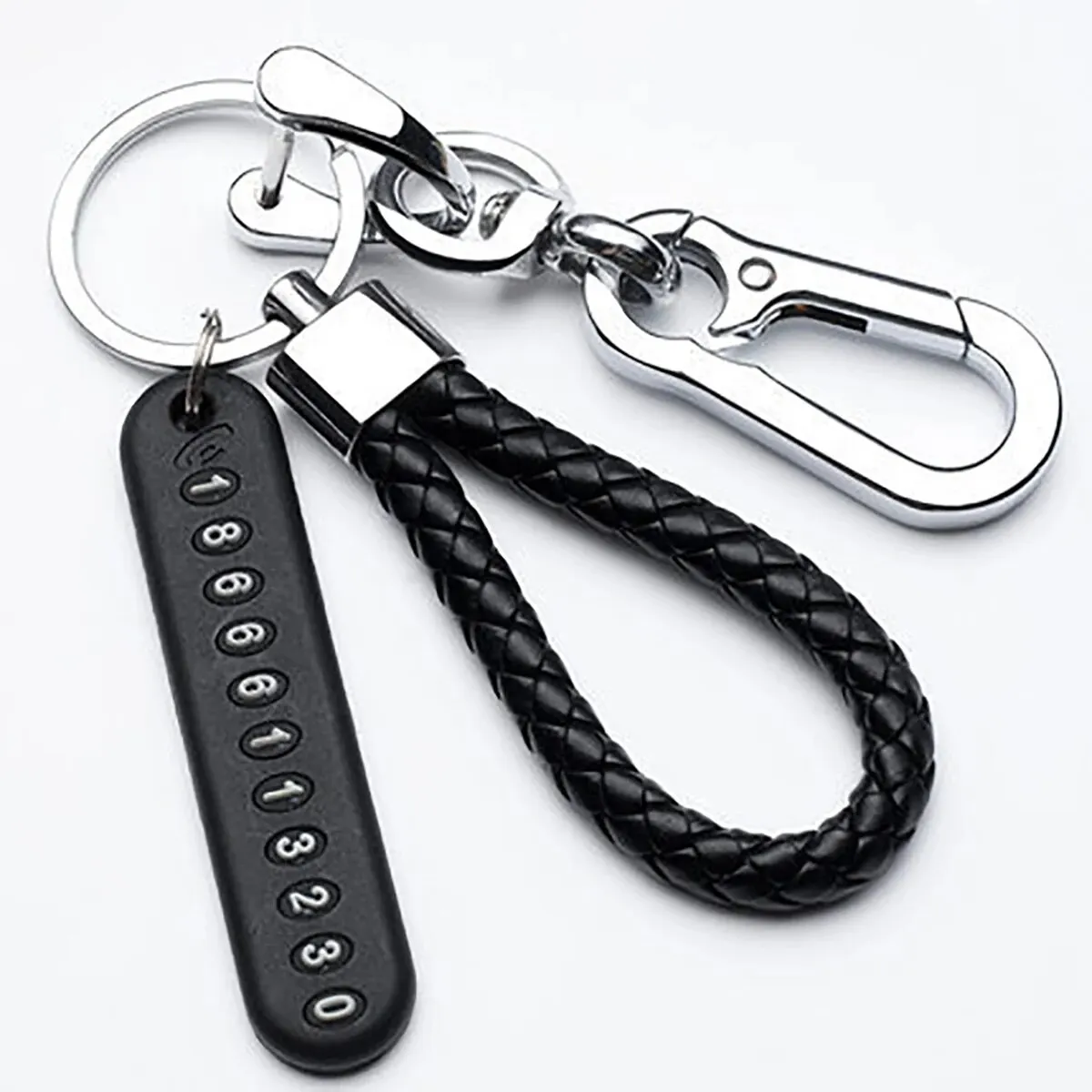DIY Mobile Number Plate Keychain Punk Woven Leather Anti-Lost Car Keychain for Men