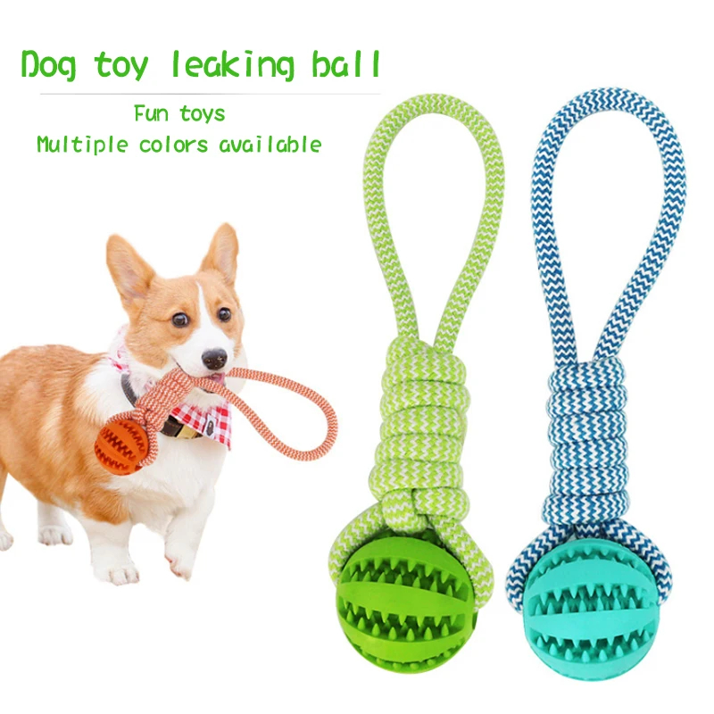 Dog Toys Balls Interactive Treat Rope Rubber Leaking Balls For Small Medium Dogs Chewing Bite Resistant Pet Tooth Cleaning