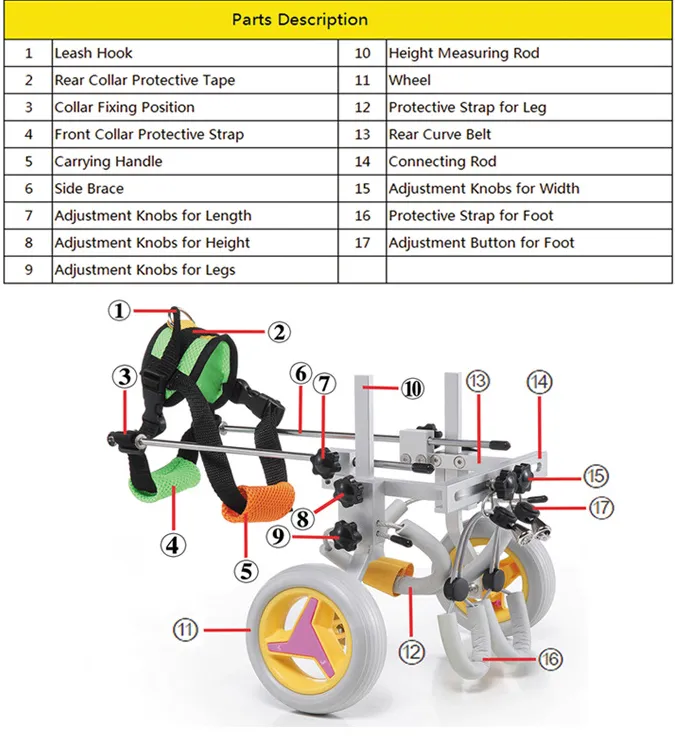 Adjustable Design: One of the most important features of a dog wheelchair is adjustability. As dogs vary in size and shape,