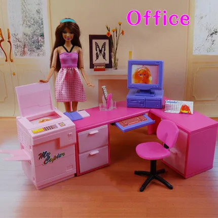 Doll Furniture Office Computer Desk Bookcase Set Play House Toys