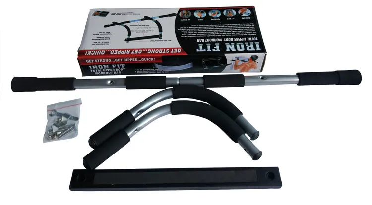 1. Using clever mechanics principles, the horizontal bar is fixed by the weight of the body, without any modification to the door frame, nor