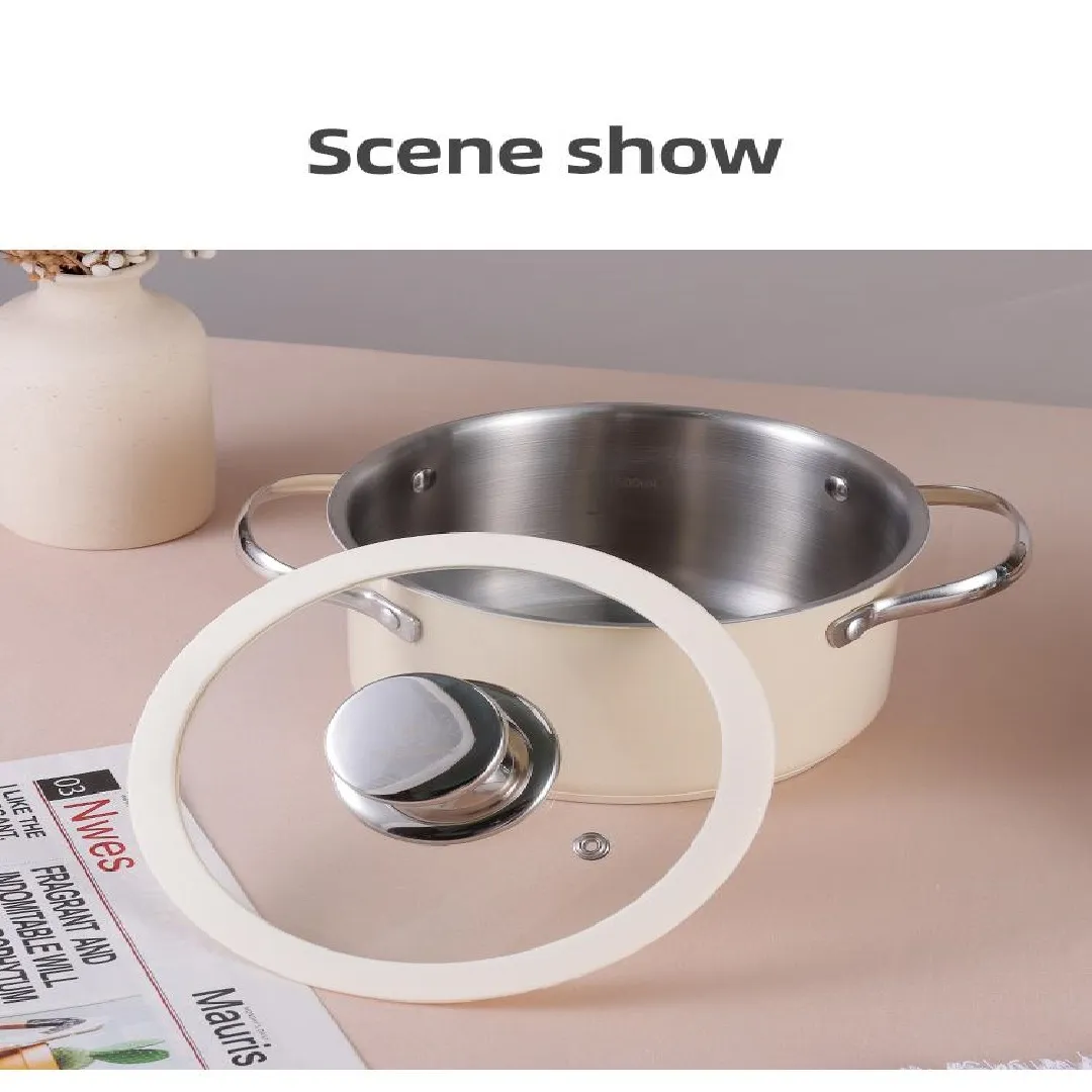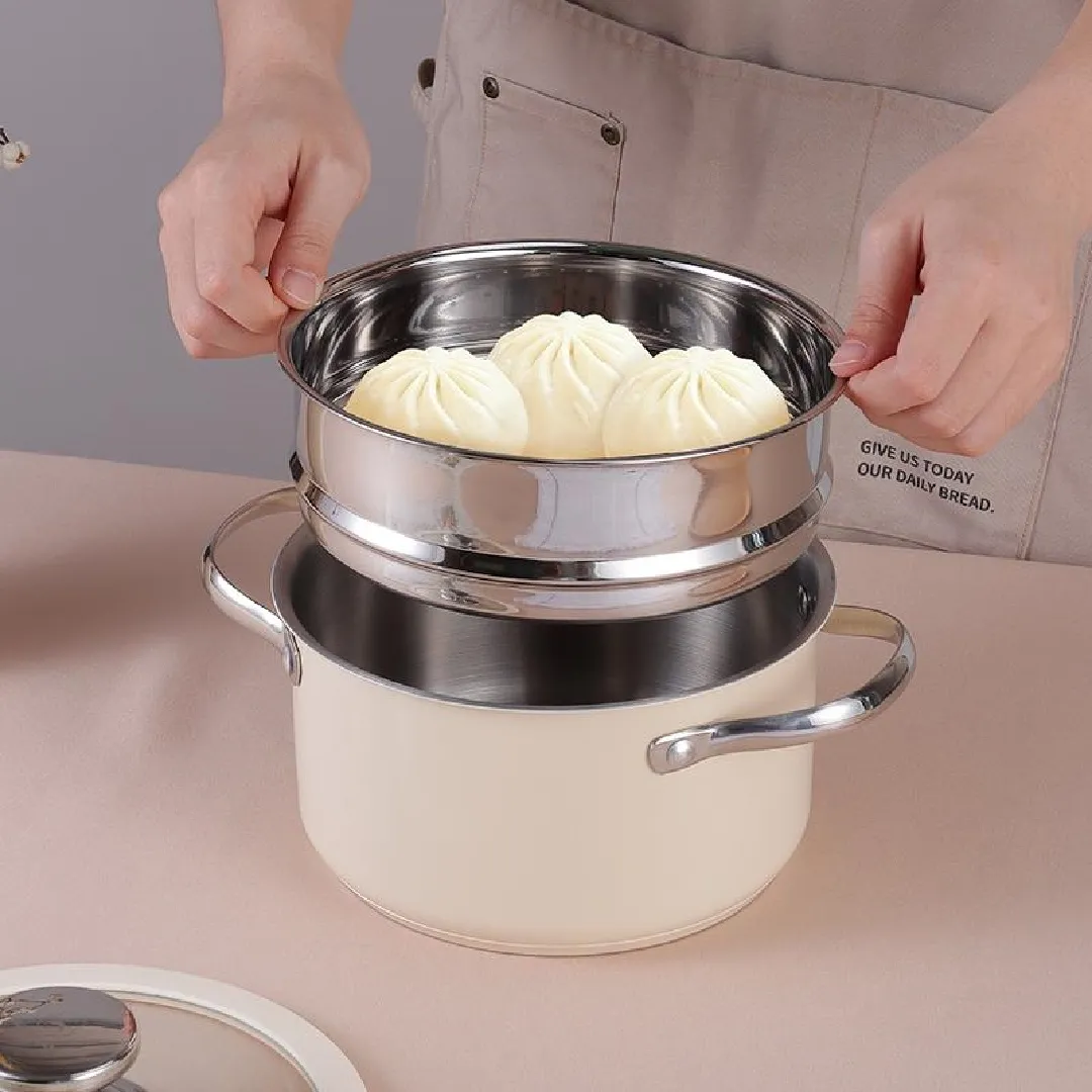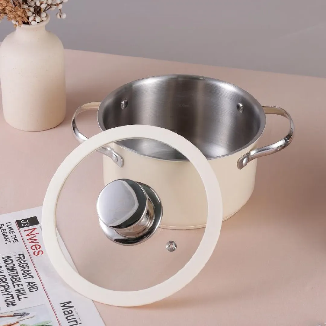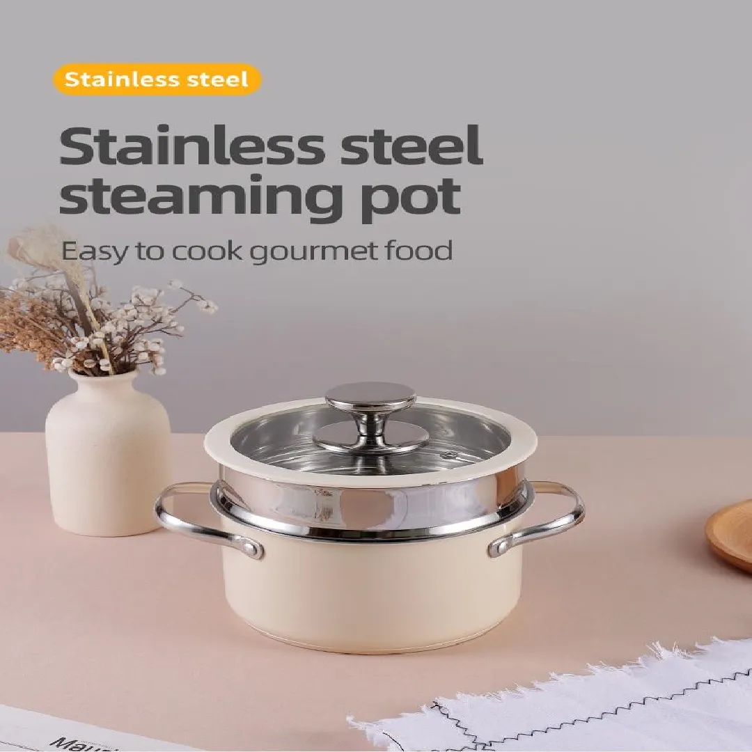 304 stainless steel ceramic coated beige stockpot with steamer silicone glass lid Kitchen cookware suitable for all cooktops and dishwashers