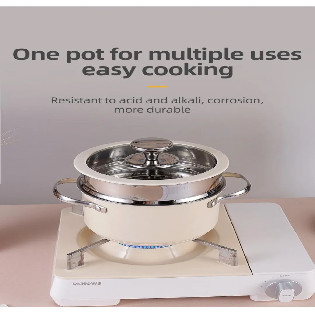 - Two-Pot Design: Bottom pot holds water, top pot gently cooks ingredients.