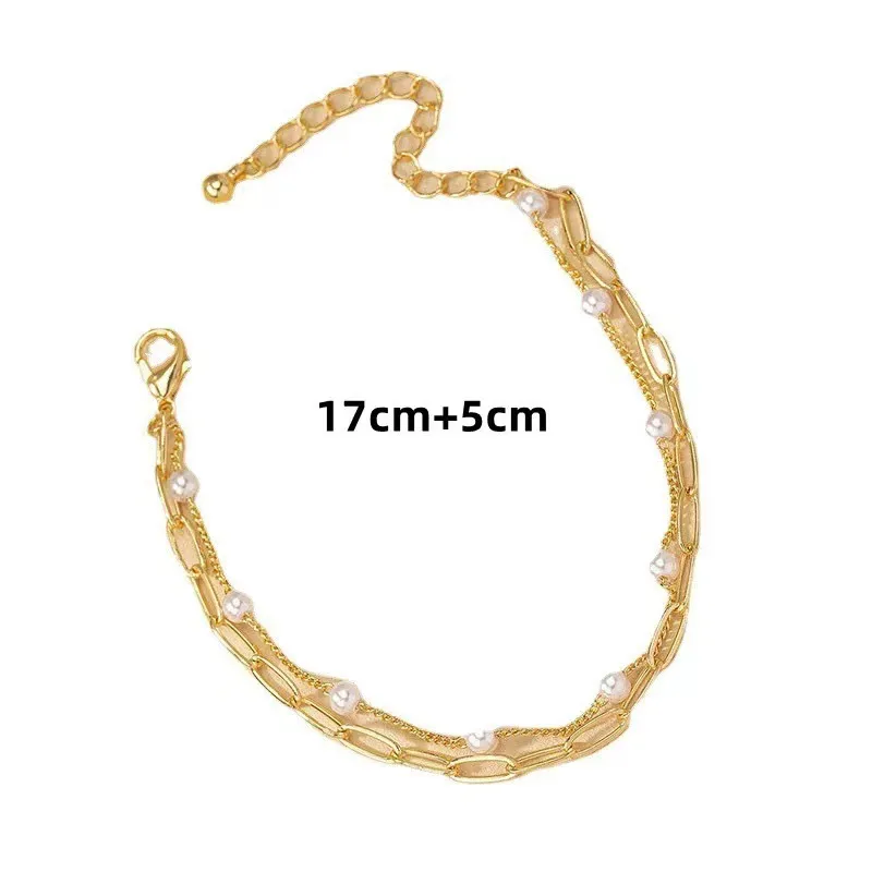 - Elegant and Modern Design: This bracelet features a double-layer design that merges classic and modern elements. The delicate pearl-adorned chain adds a touch of timeless elegance, while the sleek link chain offers a contemporary edge, making it a versatile accessory for any style.