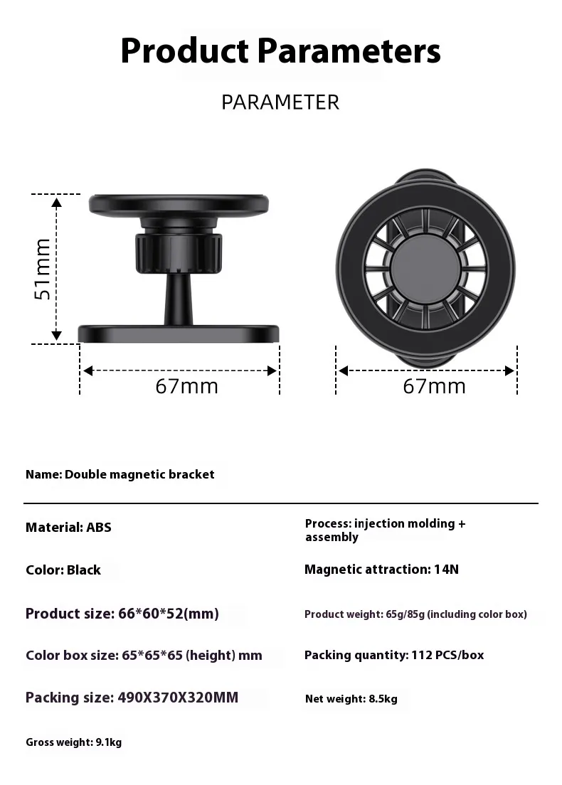 The Double-Sided Magnetic Outdoor Photography Magnetic Base Bracket is designed for photographers and content creators who need flexible and secure mounting solutions. Its strong double-sided magnets allow you to attach cameras, lights, or accessories to metal surfaces quickly and safely, providing stable support in any outdoor or indoor setting.