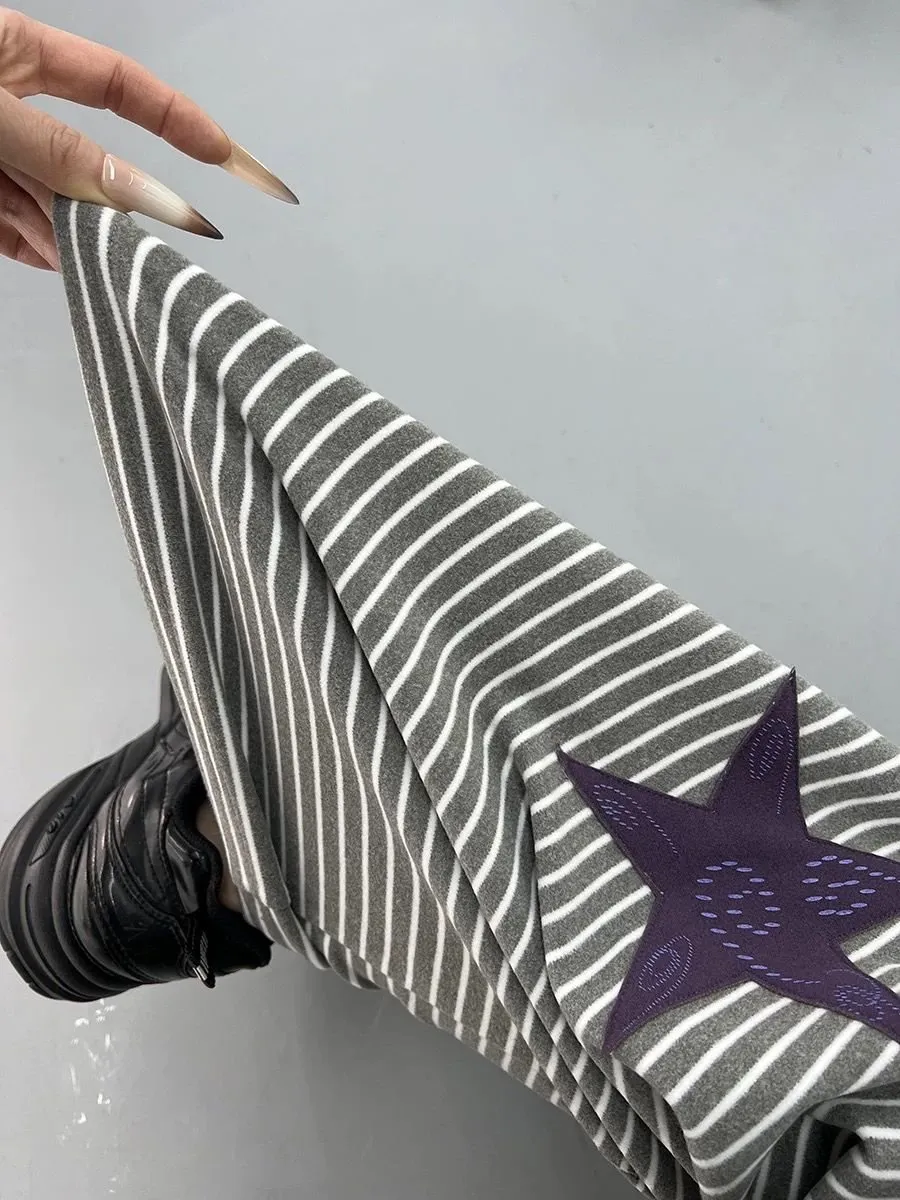 Double-sided Velvet Straight Loose Striped Autumn And Winter Trousers