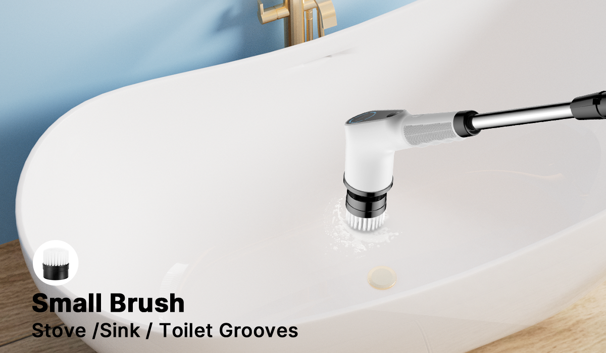 - Shower Scrubber with Long Handle to Save Your Back - Cleaning shouldn't be a pain, especially for the elderly or those with mobility issues. Our bathroom scrubber features a retractable handle, offering 3 lengths to accommodate different cleaning needs. Say goodbye to bending over or kneeling—let the electric scrubber do the work for you.
