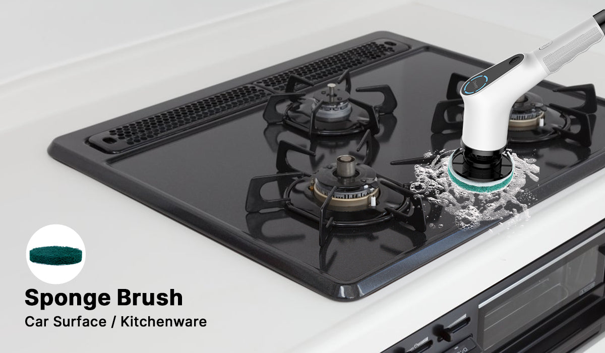- Brush Heads for Versatile Cleaning - With brush heads included, our cleaning brush is tailored for various cleaning tasks. An around brush is ideal for cleaning the bathtub, a corner brush to enter those hard-to-reach corners and crevices, a large flat brush to tackle the floor, a sponge brush for car window glass cleaning, and a scouring pad for the kitchen. We've got you covered. Effortlessly remove grime and stains with precision and ease.