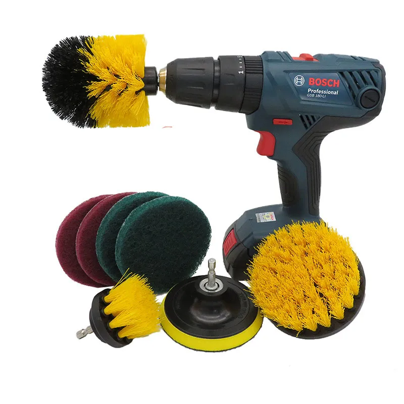 Drill Brush 8-Piece Set: Ultimate Tool for Floor and Wall Cleaning, Descaling, and Polishing