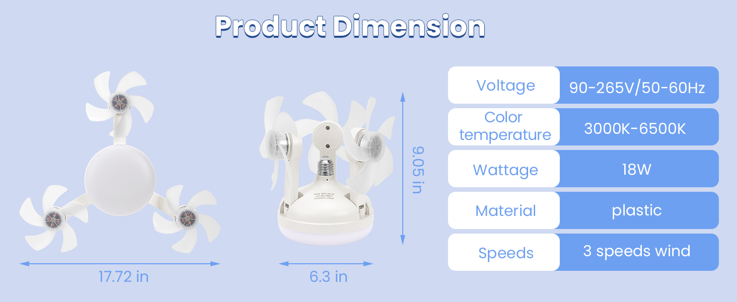 - 【Multifunctional Ceiling Fan with Light & Remote】 The latest 2025 drone-style ceiling fan light combines powerful airflow with high-brightness illumination. This 17.7-inch socket fan light features a dimmable LED lighting system with three adjustable color temperatures (3000K/4000K/6500K), providing soft, eye-friendly lighting for living rooms, bedrooms, kitchens, garages, and more.