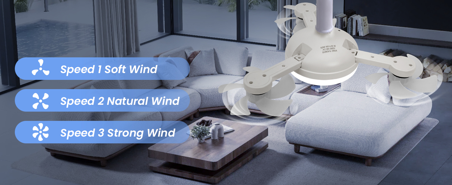 - 【Innovative No-Installation Design】 The socket fan adopts a unique three group drone blade design, compatible with E26/E27 screw socket lamp holders, without additional wiring or installation, and can be easily screwed in and used like a regular light bulb. Stronger and more modern than traditional ceiling fans, adding a sense of technology and convenience to your space