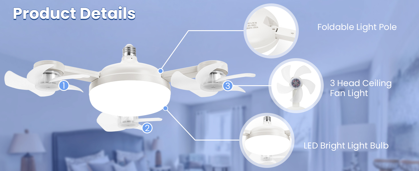 - 📣Stylish and practical design: This socket ceiling fan with light adopts a unique drone shape design, and the three/four fans can be folded up like drone arms, adapted to the E26 interface, plug and play, no wiring required