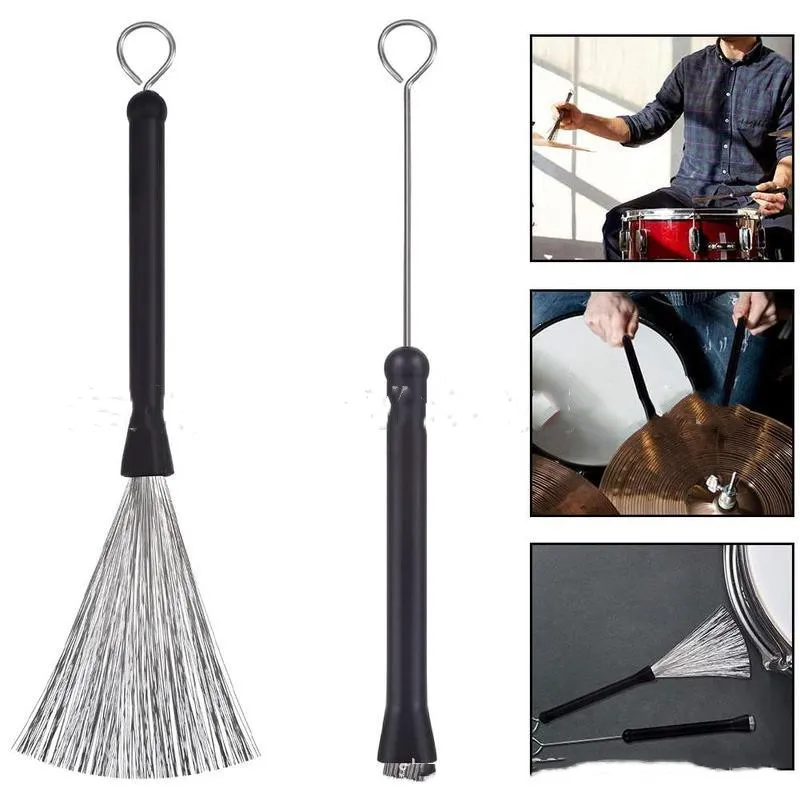 Wire brushes come with flexible stainless steel wires, perfect for subtle and delicate strokes on snare drums and cymbals. Their smooth, swishing sound is favored in jazz, blues, and softer musical genres.