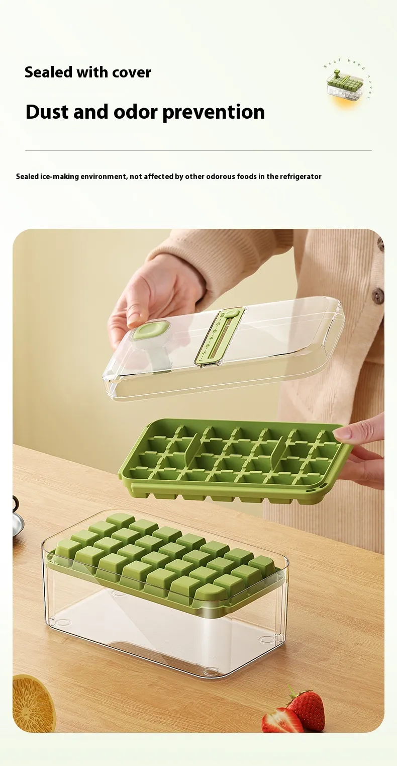 1. Easy to release: By positioning the ice cubes tray and lid correctly, utilize the press design to release all ice cubes effortlessly with