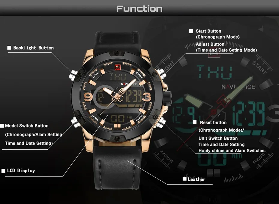 - Dual Display: Analog and digital time readings for added functionality and style.