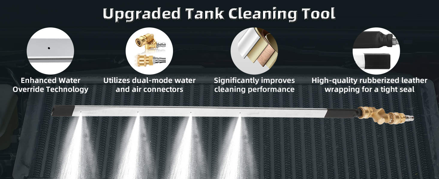 - Powerful water pressure:Our Pressure Washer Radiator Wand, the water outlet with more powerful water force,water vapor two cleaning mode, easy to remove stains and residues in the tank, to keep the tank working properly, to avoid the tank to bring you a high temperature warning