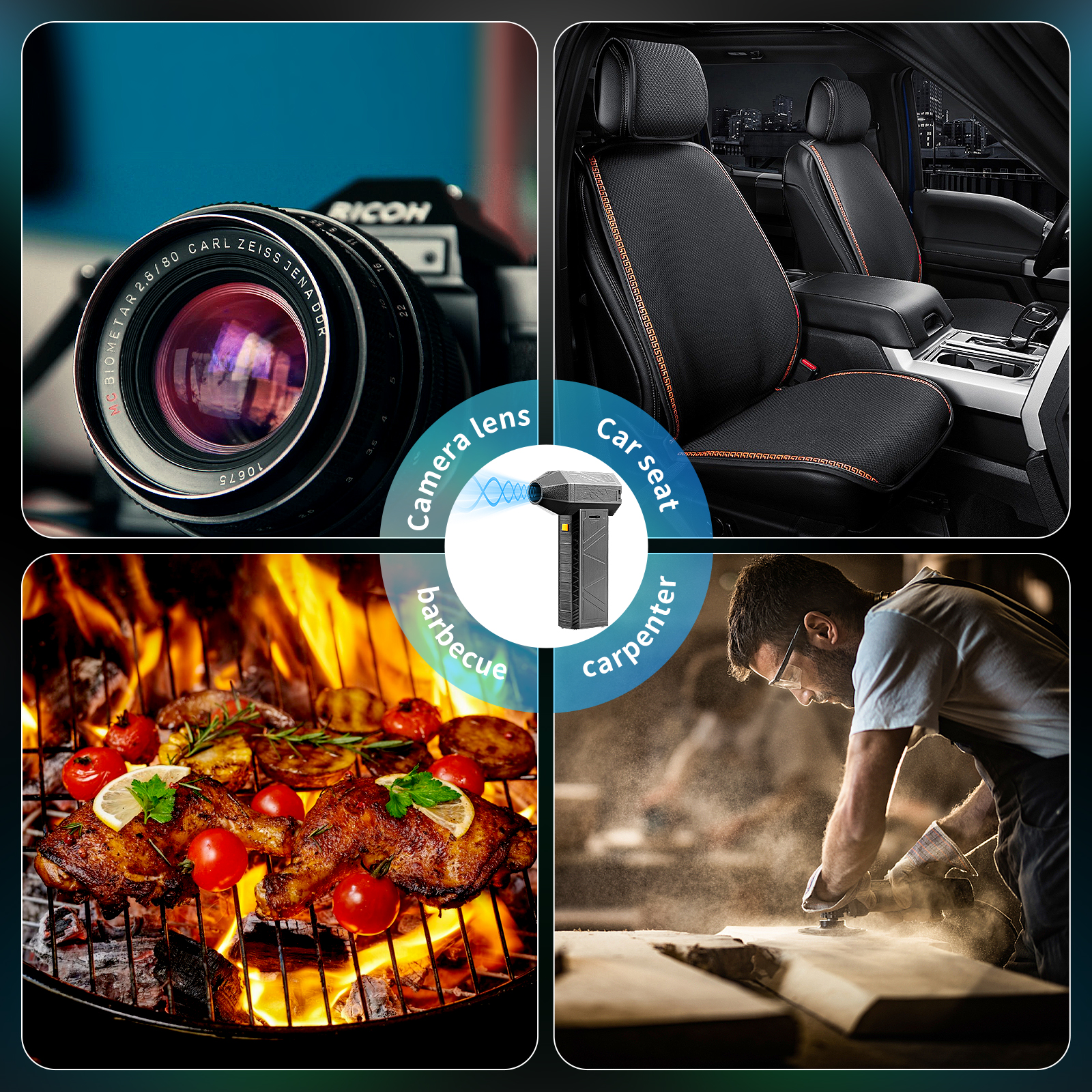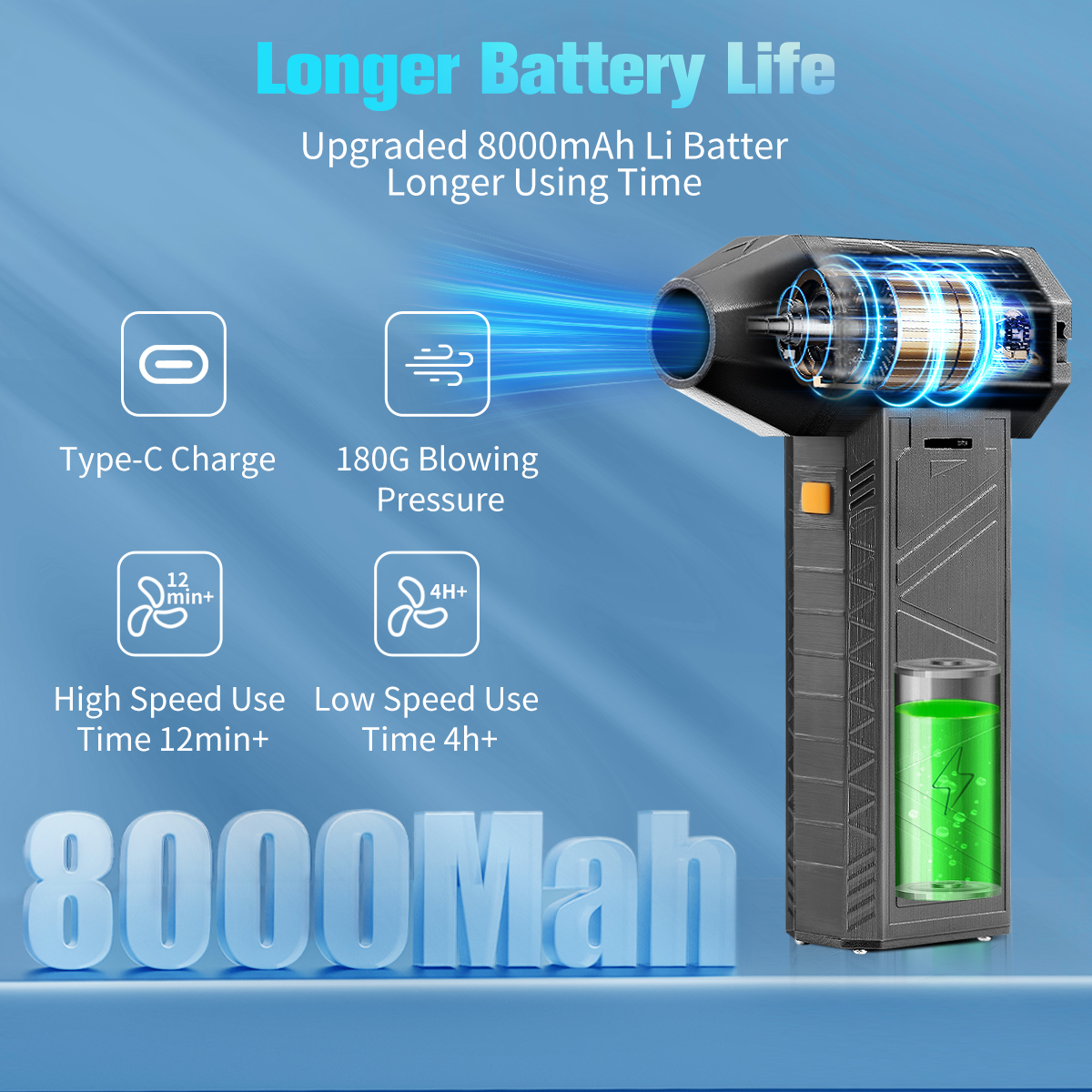 The Electric Air Duster Cordless Keyboard Dust Cleaner is the ultimate solution for maintaining a dust-free and clean environment, whether it's for your computer, car, home, or office. Featuring an 8000mAh large battery, this powerful air duster provides up to 30 minutes of continuous use, allowing you to tackle multiple cleaning tasks with ease. The 130000RPM high-speed motor delivers a strong jet of air capable of dislodging even the most stubborn dust and debris from tight spaces like keyboards, vents, car interiors, and delicate electronics. Unlike traditional compressed air cans, this device is eco-friendly and rechargeable, offering long-term savings and environmental benefits. The adjustable airflow feature allows you to switch between different speed settings, providing precise cleaning for various surfaces and devices. Its cordless design makes it convenient and portable, perfect for both indoor and outdoor use. Lightweight and ergonomically designed, the Electric Air Duster is easy to handle, ensuring you can reach every nook and cranny without hassle. Ideal for computer maintenance, car cleaning, or household tasks, this versatile duster is a must-have tool for anyone looking to keep their surroundings spotless.