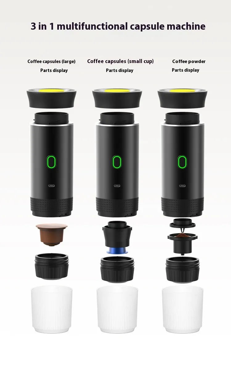 ã€Multi-compatible】The 3-in-1 portable espresso machine is equipped with a ground coffee compartment and a capsule compartment, which is