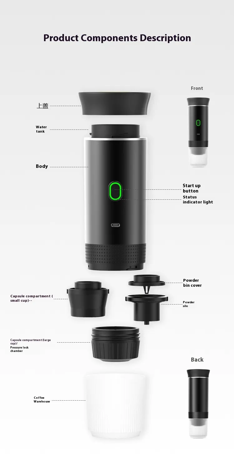 ã€Intelligent Extraction】Portable espresso machine adopts an intelligent heating function,and convenient extraction, double-click the
