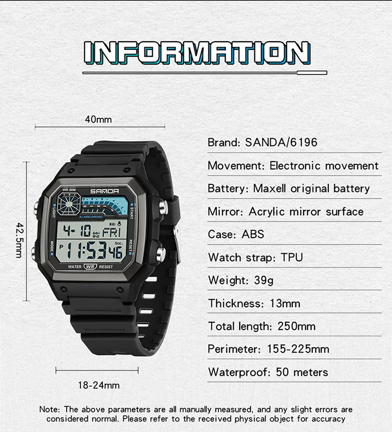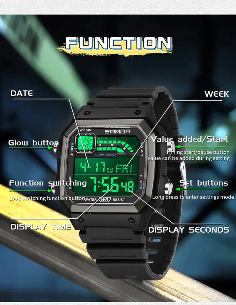 Step up your game with the Electronic Watch Luminous Waterproof Sports Men Thin Square, a sleek and functional timepiece designed for men who demand style and performance. Combining a modern square face with essential sports features, this watch is perfect for active lifestyles and everyday wear.